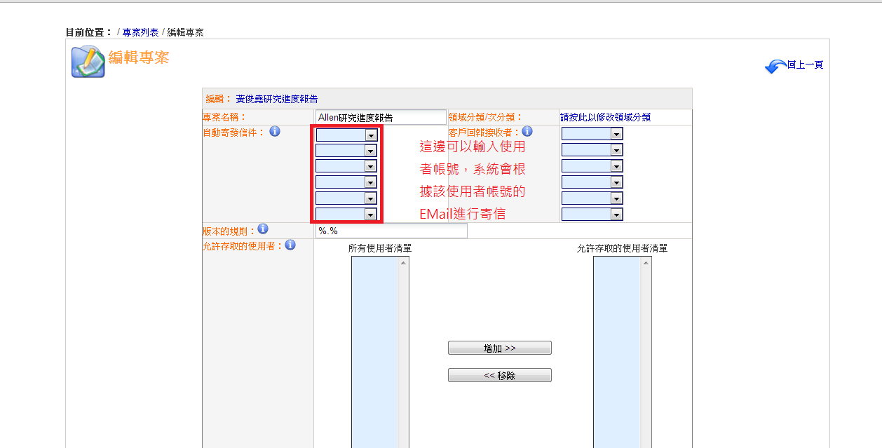 不過切記!如果回報頁面沒有指派給任一個使用者的話,系統寄出來的信件,收信人列表是空的,只有自動寄發信件列表中的使用者是採用副本的方式寄信,這樣子容易被某些系統誤認為垃圾信件。