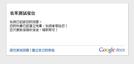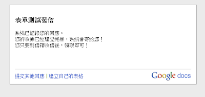 (回應訊息可在編輯表單時,右上方功能列的更多動作→編輯確認訊息 自訂)